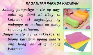 10 paraan upang mapangalagaan ang kalikasan. Ang _____ ay ginagamit upang bumango at maging malinis ang iyong katawan.