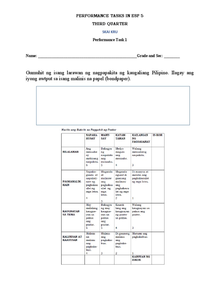 Gumuhit Ng Isang Larawan Ng Nagpapakita Ng Kaugaliang Pilipino Ilagay Ang Iyong Awtput Sa Isang Malinis Na Papel Bondpaper Pdf