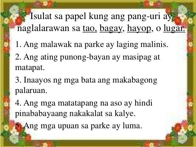 Self-Learning W orksheet sa. Ito ay tawag sa mga salita o lipon ng mga salitang nagbibigay- turing sa pandiwa pang- uri at kapwa pang-abay. Nang Na ng 1.