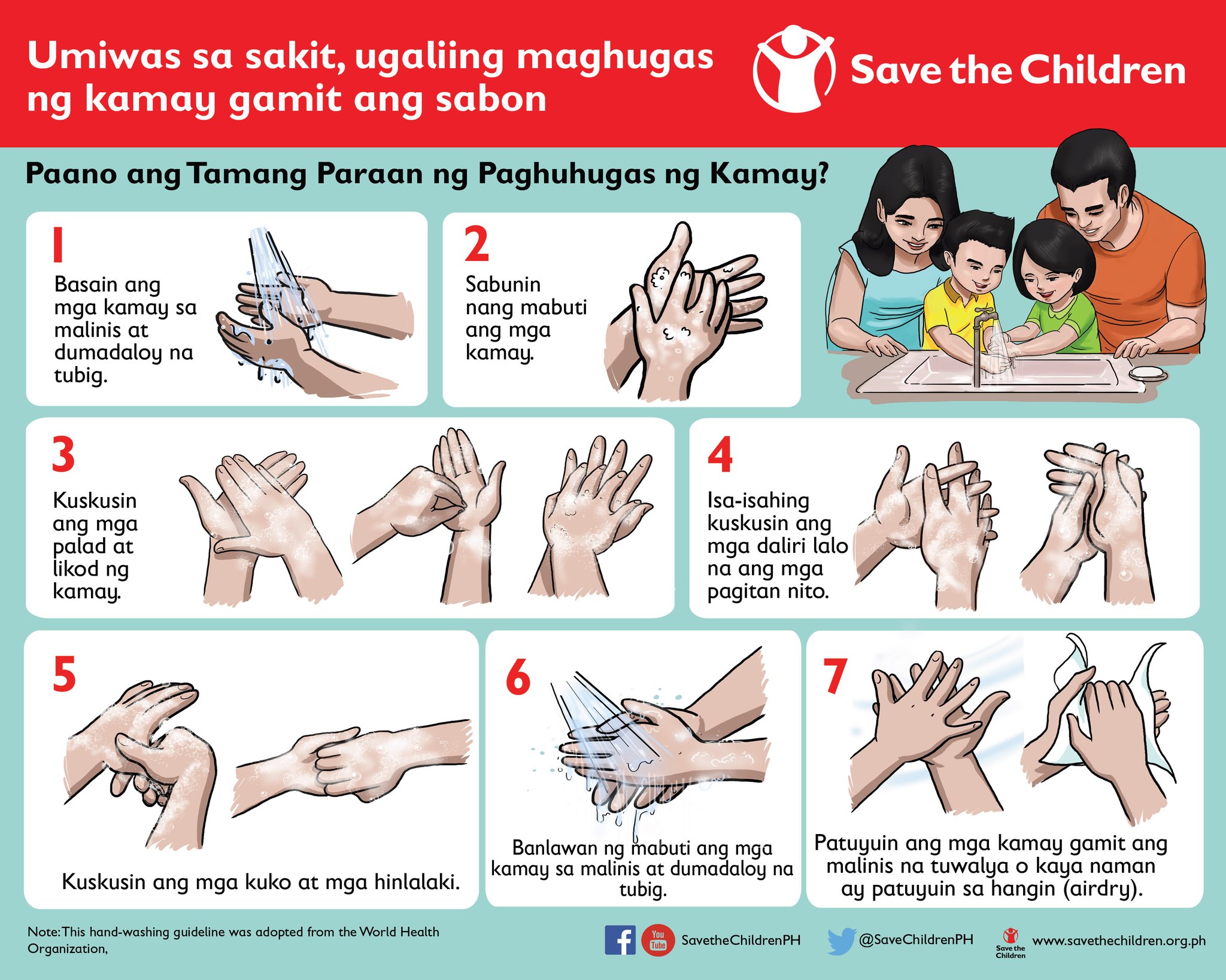 Kumuha ng malinis na tela basain ito ng sabon at tubig. Sukatin ang tubig huwag humingi ng tawad. Banlawan ang iyong mga kamay nang lubusan ng maligamgam at dumadaloy na tubig.